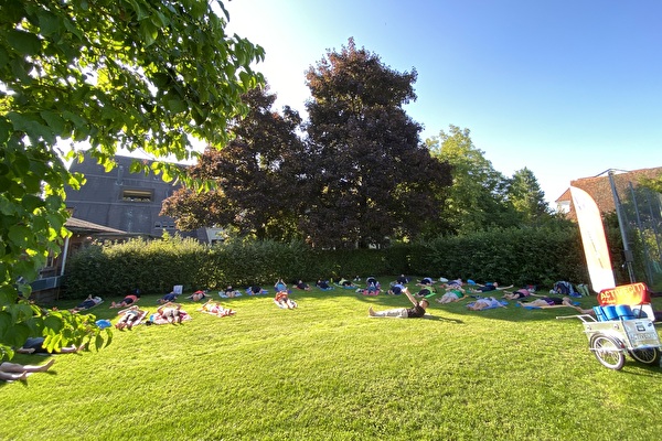 Eine Yogalektion in der Abendsonne. (Bild: Stadt Kloten)
