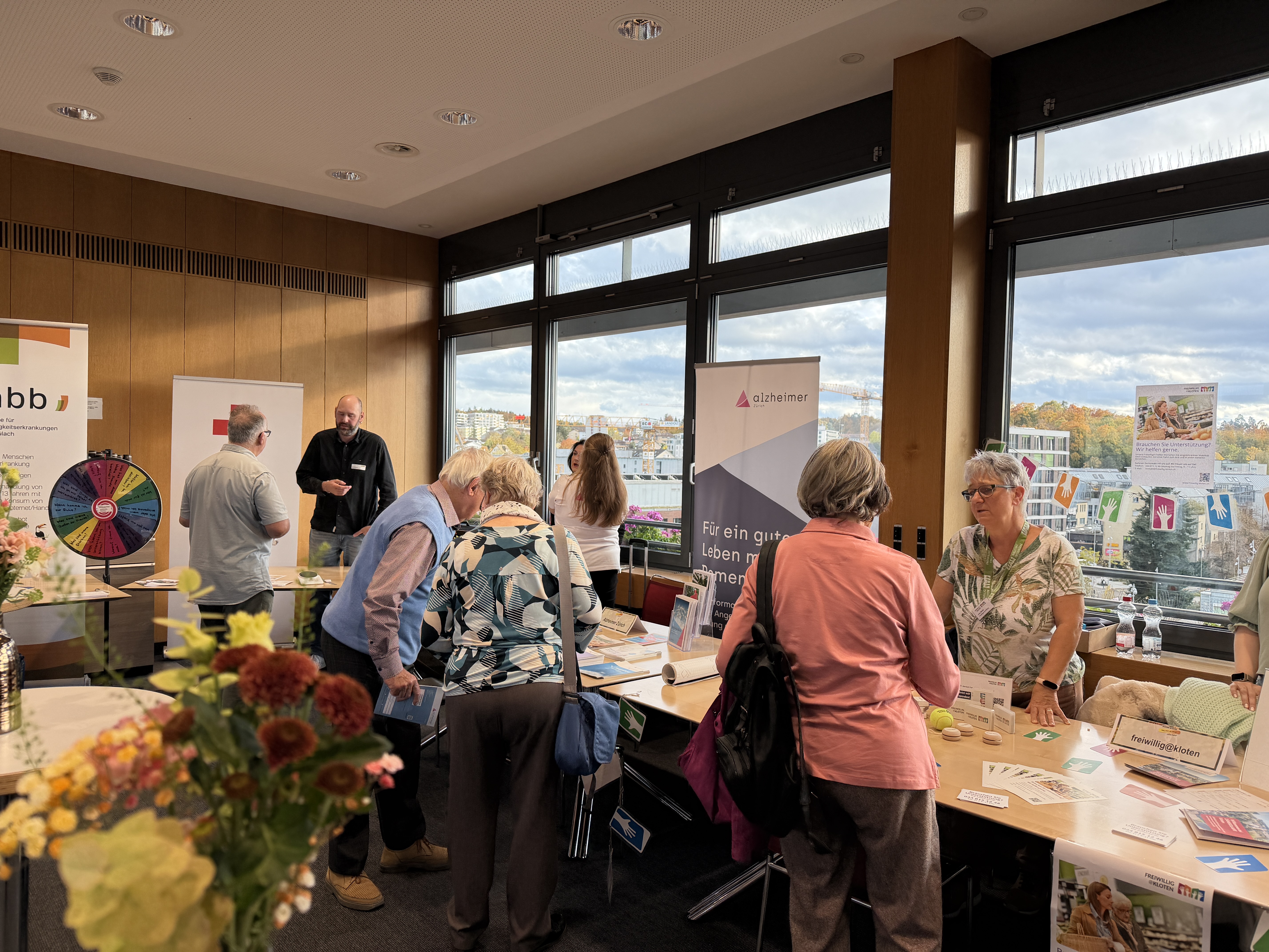 Neben dem Fachinput präsentierten Organisationen aus Kloten und der Region ihre Betreuungs- und Entlastungsangebote. Den Abschluss bildeten ein feines Apéro-Znacht aus der Küche des PZ Spitz sowie eine musikalische Darbietung von freiwilligen Musikerinnen und Musikern der Wohnzimmerkonzerte.