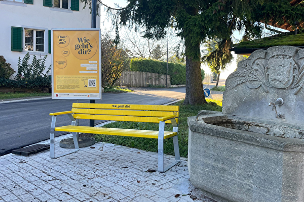 Das knallgelbe Bänkli fällt nicht nur wegen seiner Farbe auf, sondern auch wegen der Aufschrift auf der Rückenlehne: «Wie geht’s dir?». Viele Gespräche im Alltag beginnen genau mit dieser Frage. Eine ehrliche Antwort erfordert manchmal Mut – gerade, wenn es sich um belastende Gefühle wie Traurigkeit, Wut oder Angst handelt. Das «Wie geht’s dir?»-Bänkli soll Menschen jeden Alters ermuntern, Pause zu machen und mit anderen Personen ins Gespräch zu kommen. Die Frage «Wie geht’s dir?» liefert dafür einen einfachen Einstieg.